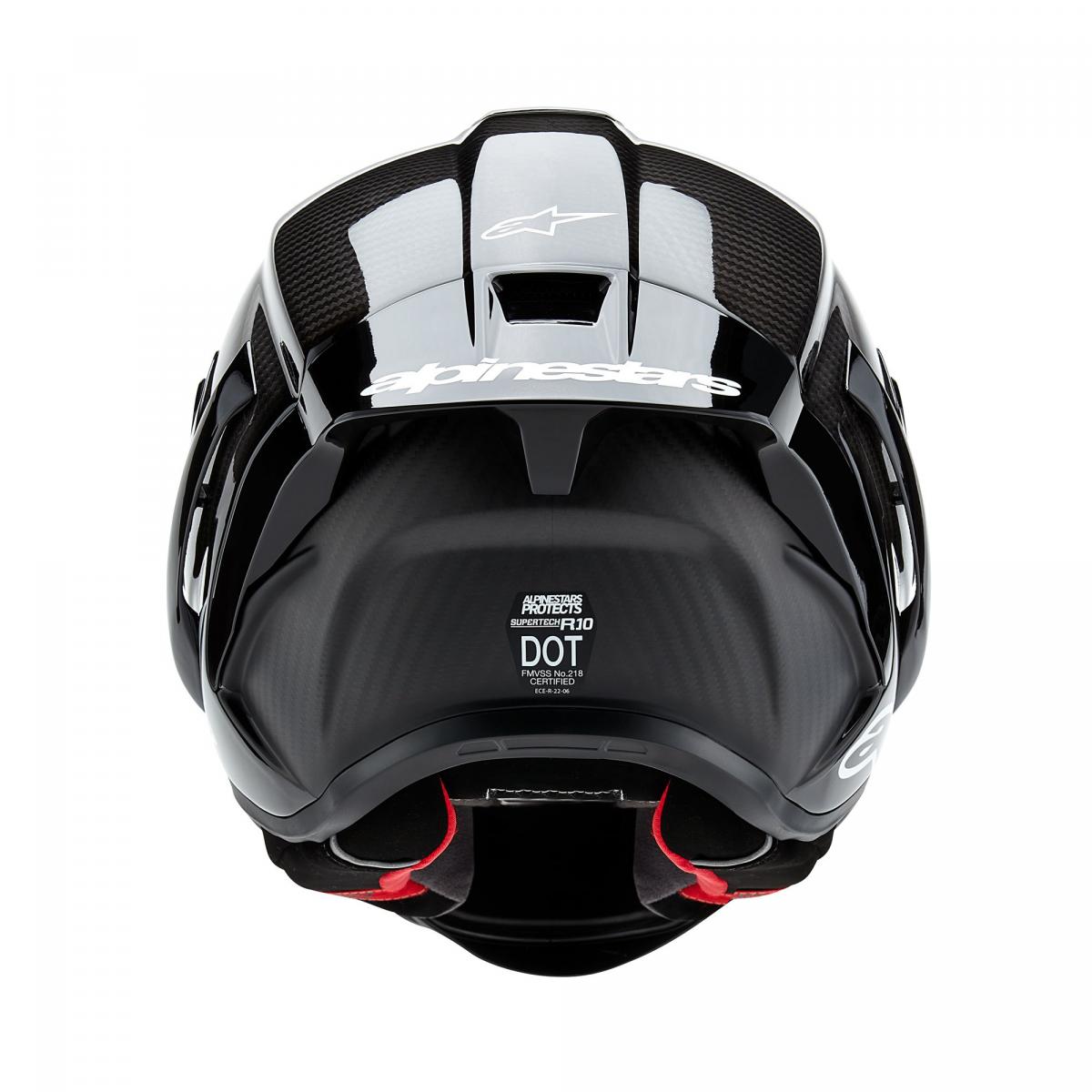 The Supertech R10 is the pinnacle of Alpinestars' racing helmets. ECE 22.06 and FIM homologated, this top performing aerodynamic helmet has a 3K high density carbon shell with A-Head fitment system and road spoiler.