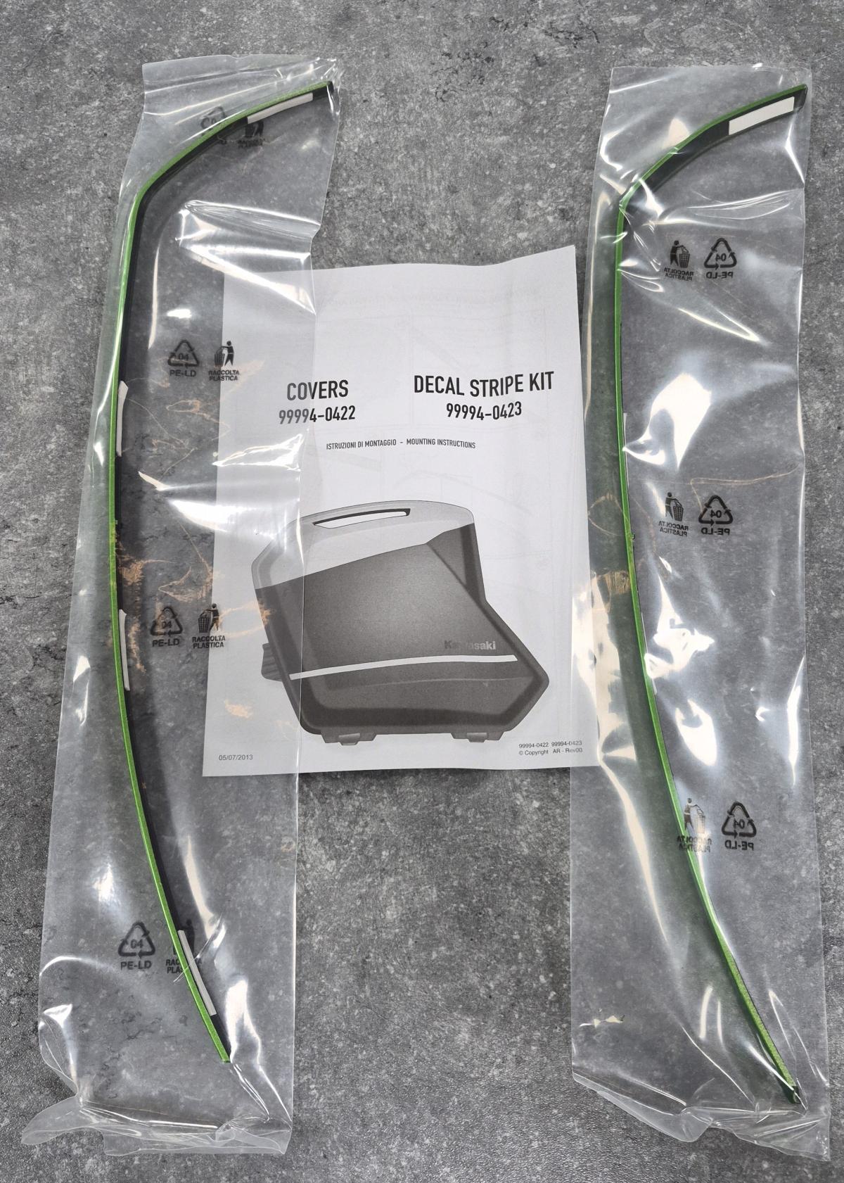 Genuine Kawasaki Deco Stripe Kit Green for genuine Kawasaki Side Cases, style of case as pictured.