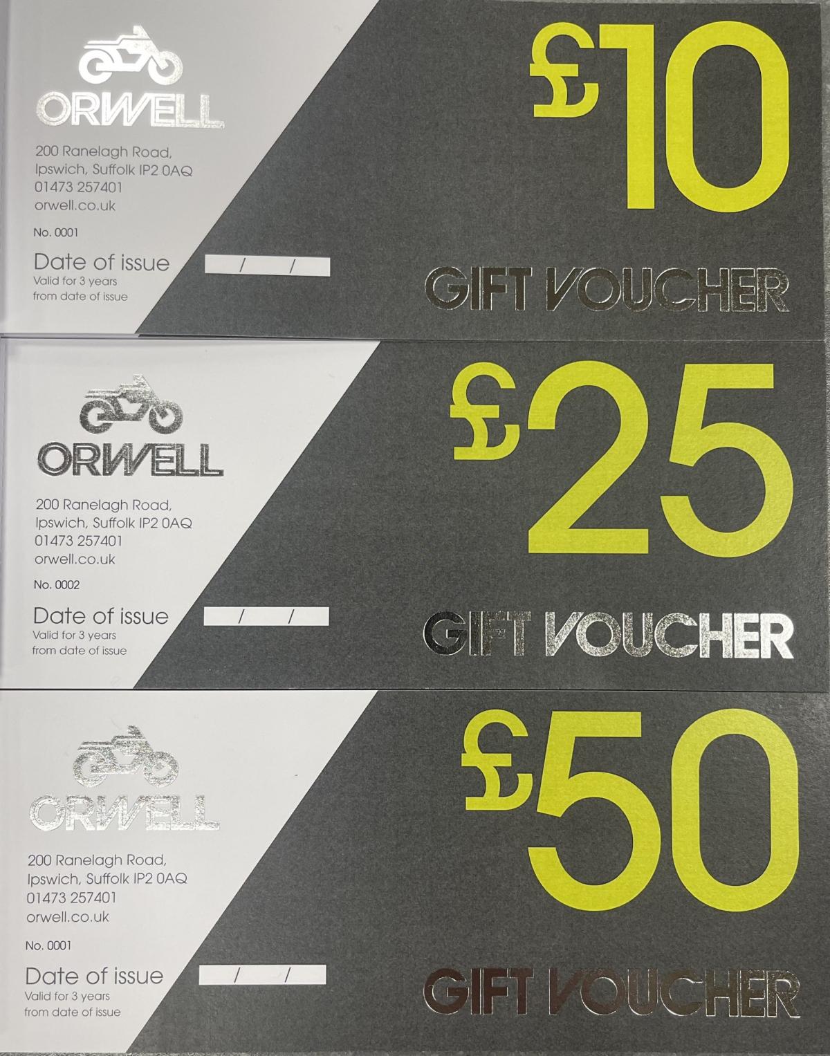 £10, £25, £50 pound vouchers in a presentation envolope.