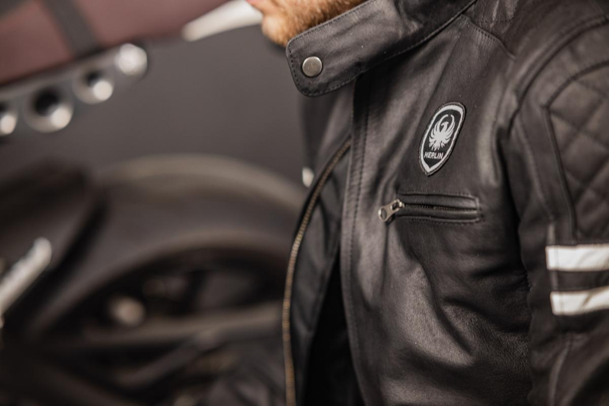 The first thing you’ll notice is just how unique the outer leather feels and looks. This is because the Aniline treatments allows for a very natural visible grain and feel with a matt finish. Merlin has strived to keep a retro look through the style of jacket; the cut, patterns, colours but bring it into the modern world and make the most of modern manufacturing and technology.