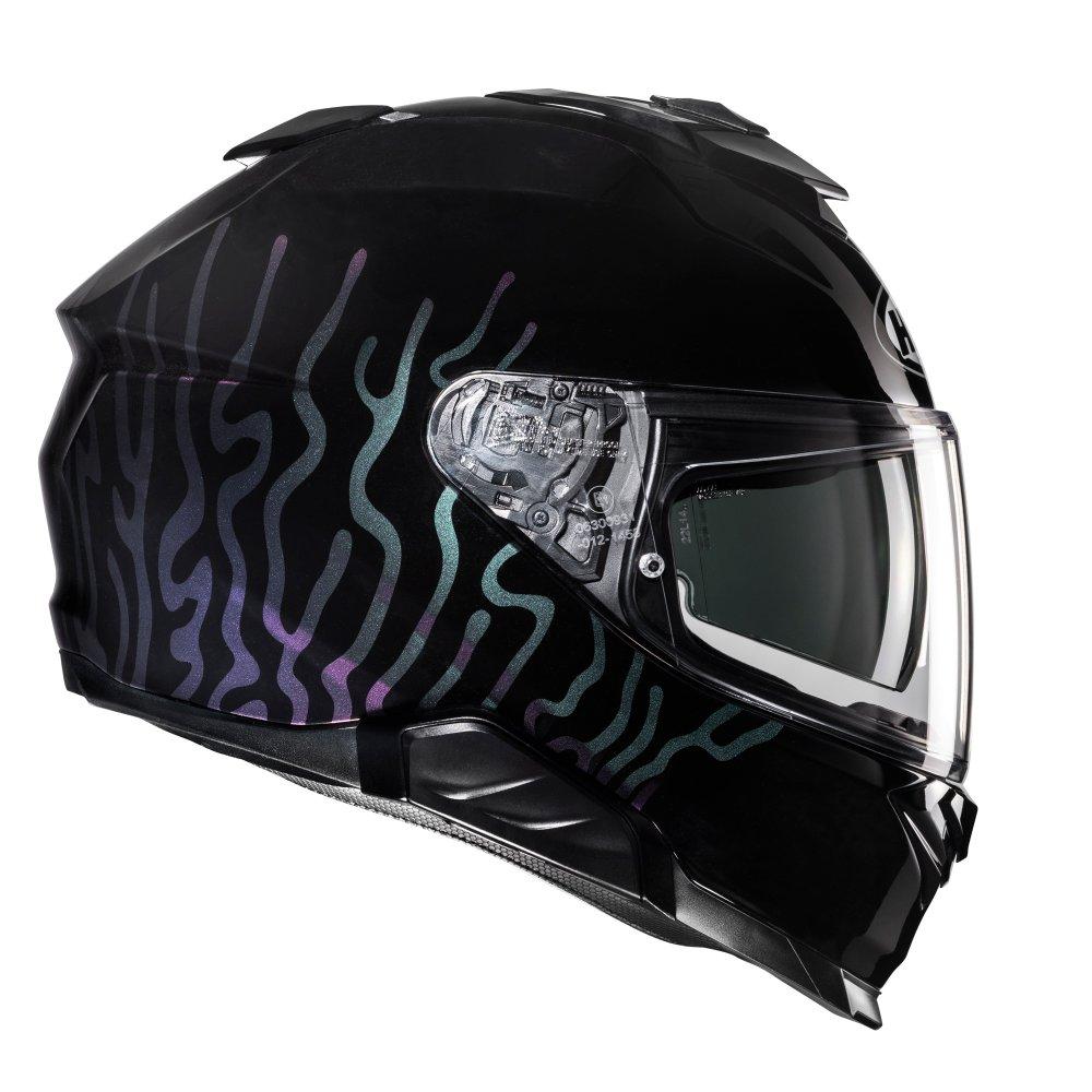 Employing Advanced Polycarbonate technology, this helmet boasts 3 shells distributed across 6 sizes, meticulously calibrated for weight and rider comfort optimization. The repositioned top vent, coupled with expanded mouth vents, maximizes airflow, enhancing intake and ventilation dynamics. Embarking on innovation, the i71 introduces both a HJ-38 Pinlock-ready face shield, featuring an enhanced PE (Push/Eject) locking mechanism for heightened safety, without compromising usability, even when gloved. Further, a new sun visor (HJ-V12) presents a versatile 3-position adjustment, enabling riders to seamlessly position the sun shield up to 10mm forward, ensuring optimal sun protection. The i71 effortlessly integrates with second-generation SMART HJC Bluetooth systems (sold separately).