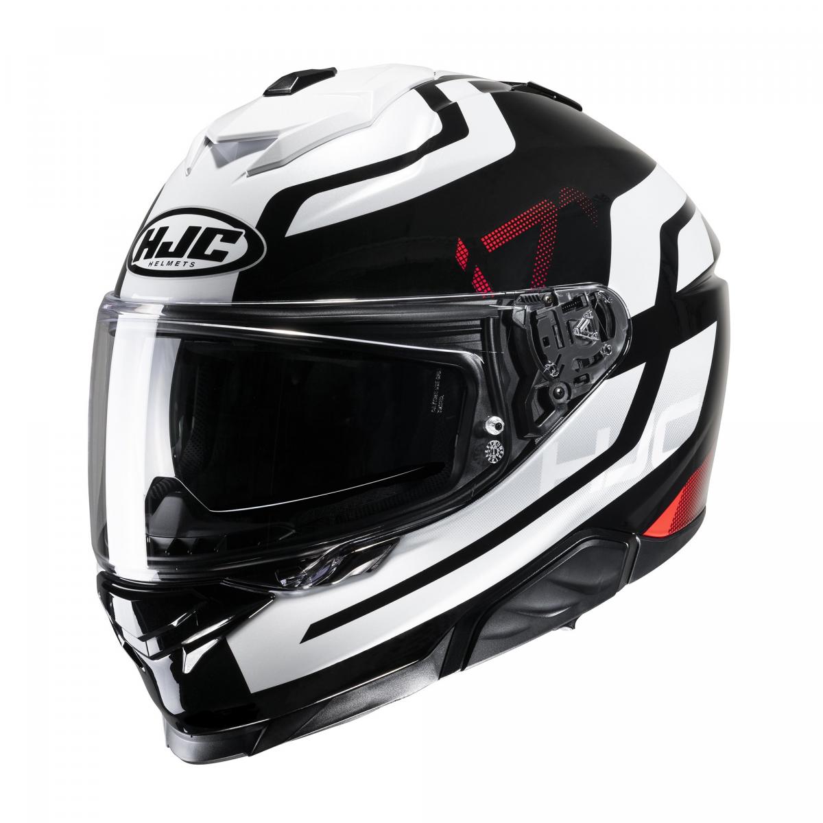 The i71 pushes the boundaries for a Sport-Touring model with its new sleek shell design. The Advanced Polycarbonate helmet now has 3 shells throughout the 6 available sizes to help optimize weight and comfort for the rider. The rearranged top vent with enlarged mouth vents allows increased air intake and ventilation. Also new with the i71 are both face shield and sun visor. The HJ-38 Pinlock ready face shield comes with a new PE (Push/Eject) locking system for improved safety, yet still easy to use with gloves. The new sun visor (HJ-V12) provides a new 3-position option for the rider to adjust the sun shield forward (up to 10mm) delivering ideal sun visor protection. The i71 will also accept the second-generation Smart HJC Bluetooth systems.