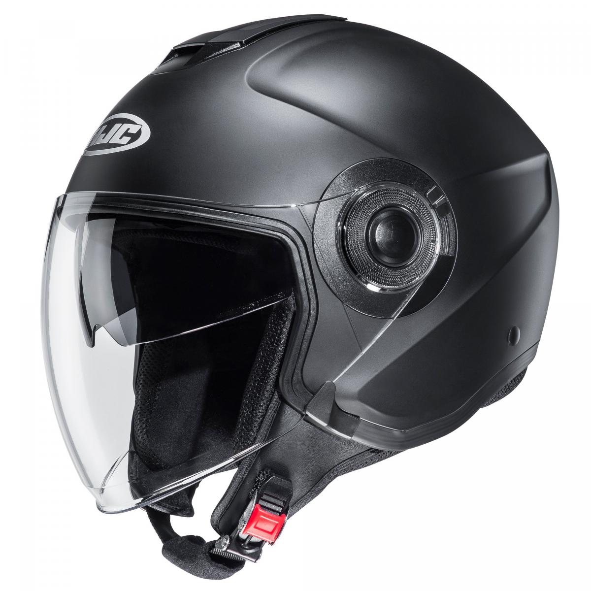 The i40N is a compact and stylish urban semi-jet helmet, composed of advanced polycarbonate material providing a light weight and comfortable helmet with superior fit using the advanced CAD technology. The helmet integrates a light smoke sunshield deploying quickly and easily and the antibacterial head liner and cheek pads are removable and washable. Speaker pockets are prepared for Bluetooth communication making the i40N the perfect urban helmet for day to day use.