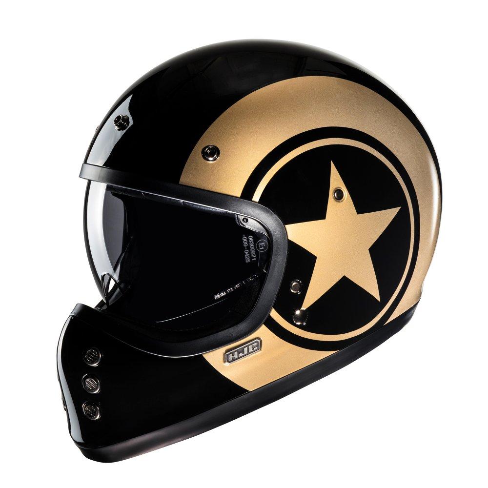 Classic styling with a modern twist. Inspired by the original FG-01 from the 1980s, the V60 goes beyond the vintage look with new-age features such as a lightweight fiberglass shell, a large inner IS-10 sun visor, built-in speaker pockets, removable and washable interior, and emergency release cheek pads for extra safety. The V60 also includes a removable 3-snap peak visor to complete the retro look.
