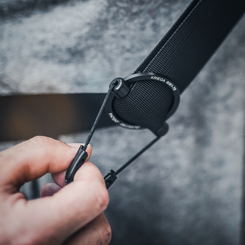 Quick and easy strap adjustment with Kriega's signature T6 alloy web tensioner.