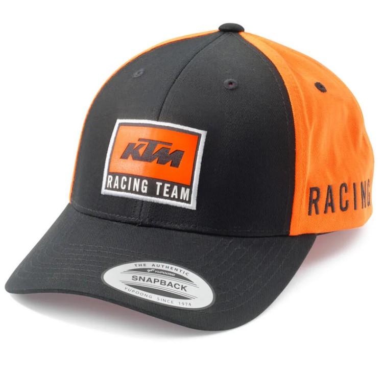 The KTM Team Curved Cap 3PW240003500 presents a dynamic blend of style and performance. This cap boasts a sleek black front panel and a curved peak, adorned with the iconic KTM Racing Team logo for a bold statement. The distinctive orange rear panels add a vibrant touch, capturing the essence of KTM's high-energy spirit. Crafted exclusively for KTM by Yupoong® Flexfit EMEI, the cap ensures a comfortable and flexible fit. Made from 100% cotton, it combines durability with breathability. Embrace the KTM lifestyle with this one-size-fits-all cap, available in the striking colours of orange and black. Elevate your wardrobe with the KTM Team Curved Cap, a perfect fusion of fashion and motorsport passion.