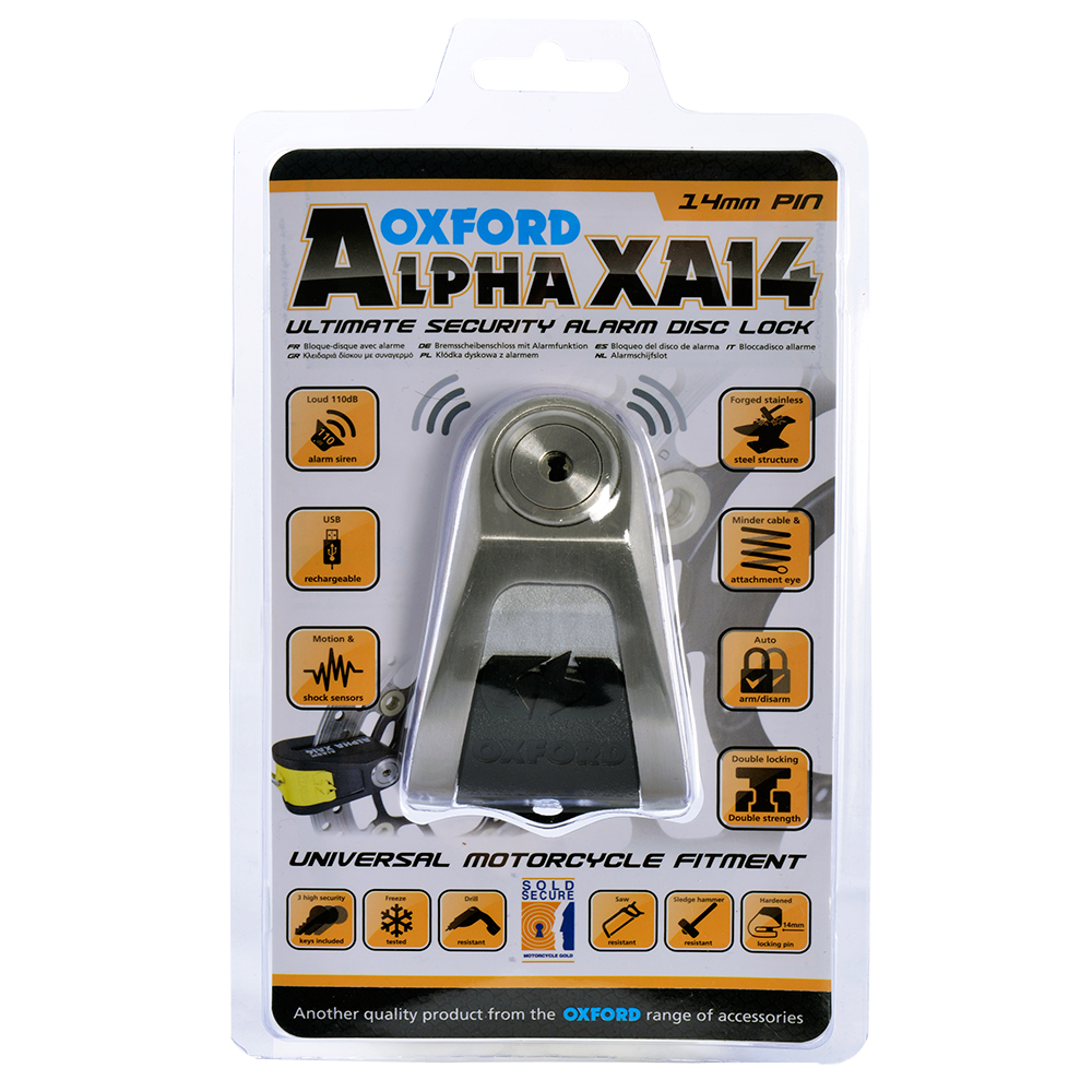 Oxford Alpha XA14 Alarm Disc Lock(14mm pin) Stainless