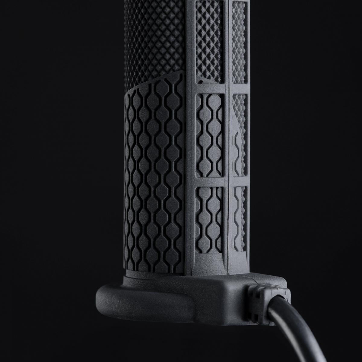 On a very practical level, these are our first fully silicone grips; this incredible material increases their lifespan by up to 200% without compromising comfort or performance, as well as reducing cable strain and increasing grip levels.