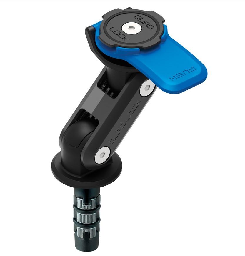 No fumbling with tricky grips. Use one hand to quickly attach and detach your smartphone from either of the Quad Lock Fork Stem Mounts.
